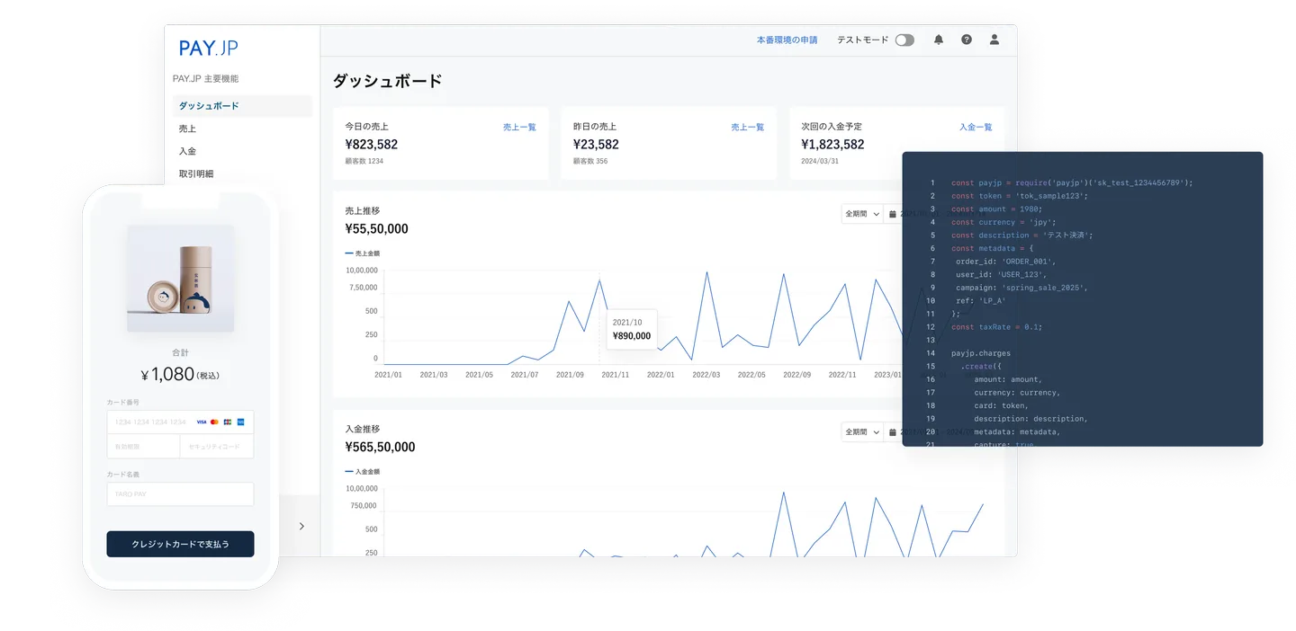 PAY.JPでは、決済システムをすばやく組み込むためのAPIドキュメントやSDK、サンプルコードをご用意しています。