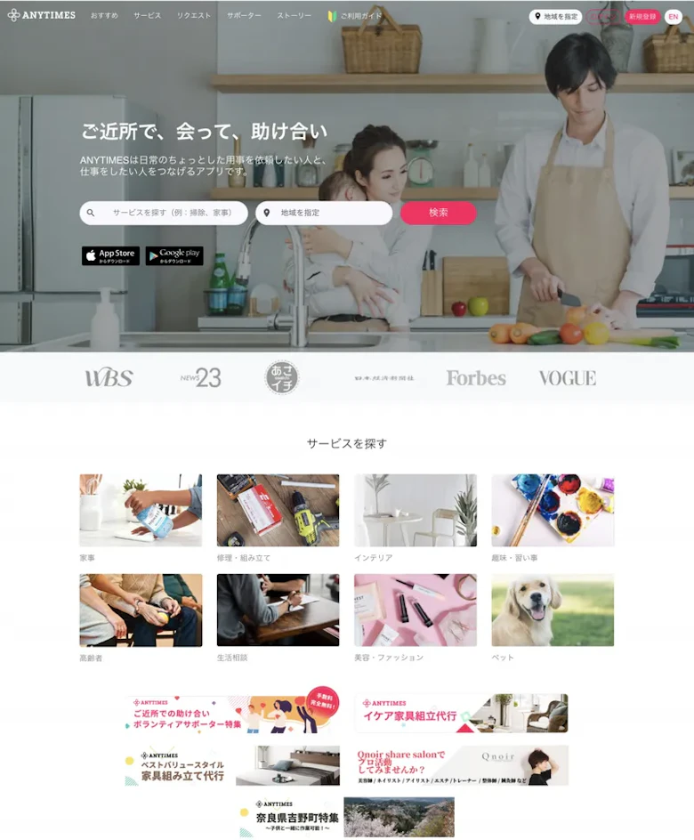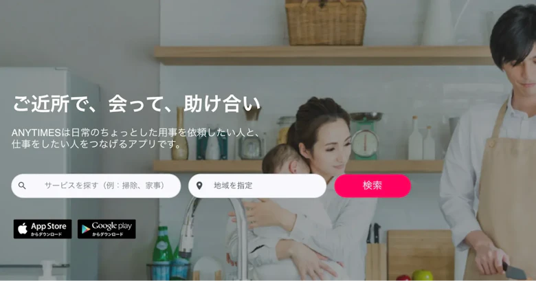 「ご近所で、会って、助け合い」をコンセプトにした、ANYTIMES(エニタイムズ)というスキルシェアサービスを提供しています。