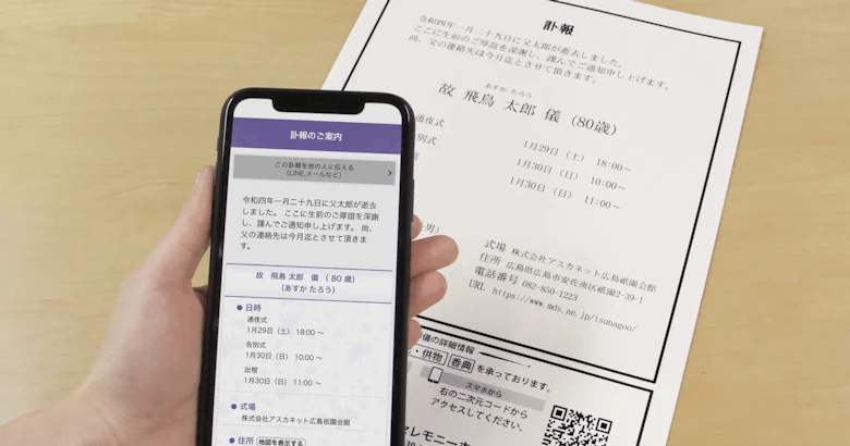 遺影写真作成・加工サービスにおいて国内トップシェアを誇る株式会社アスカネットは、SNSやメールを活用し、訃報の連絡にかかるご遺族様の手間を圧倒的に削減することが出来るオンライン訃報サービス「tsunagoo(つなぐ)」を提供しています。