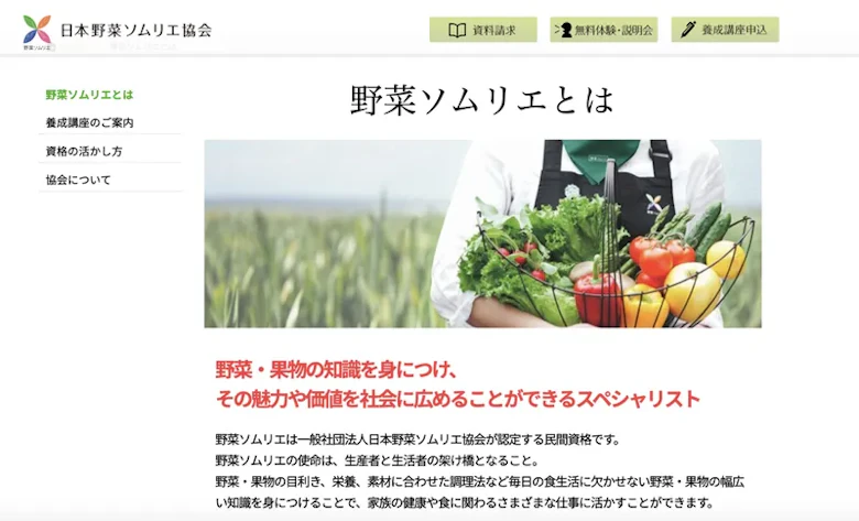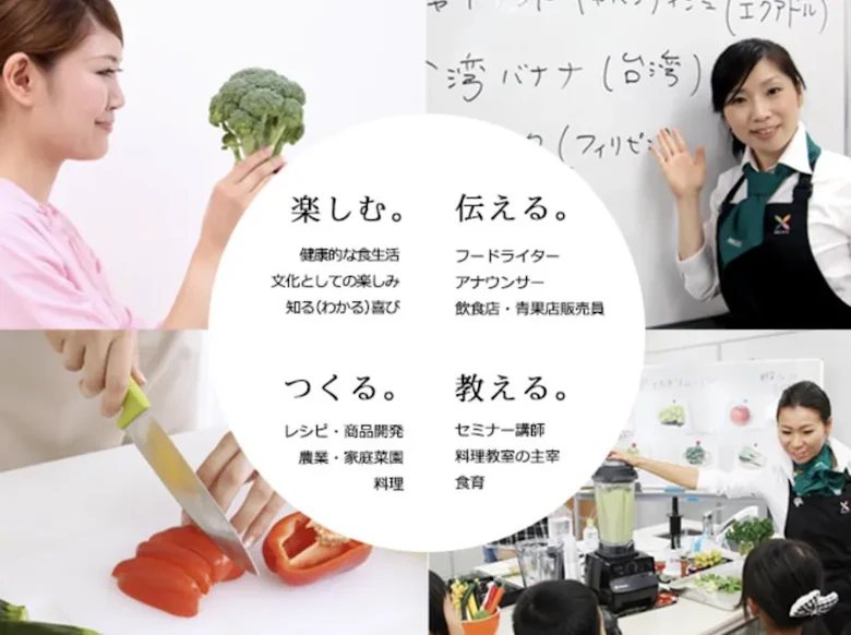 「野菜ソムリエ」は、家族の健康管理として役立てるコースや講師・イベント登壇、起業や開業向けなどそれぞれに合ったコースをご用意しています。無料講座説明会も開催しているので、興味がある方はぜひサイトをご覧ください。