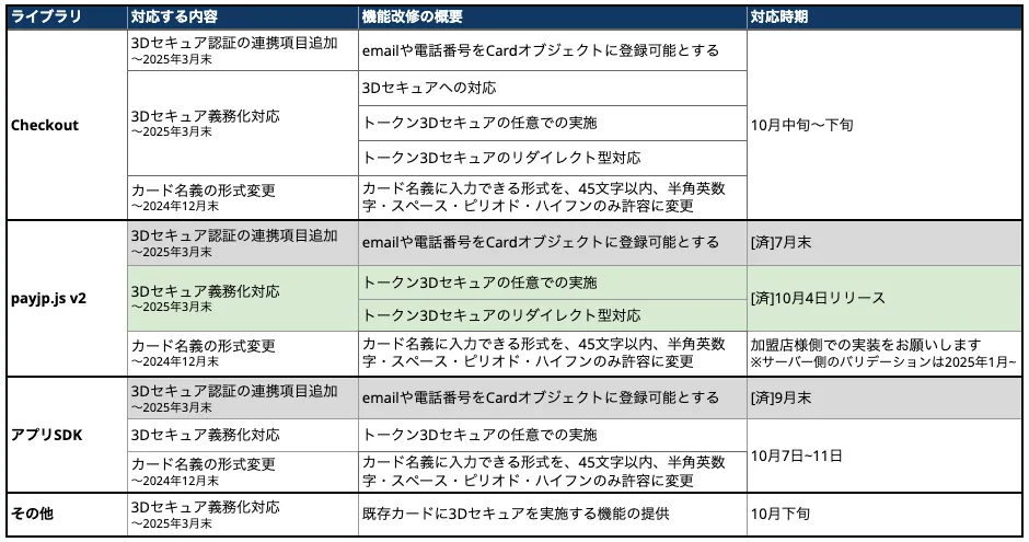 本日payjp.js v2の3Dセキュア対応をリリースいたしました。以降の予定は下記となります。